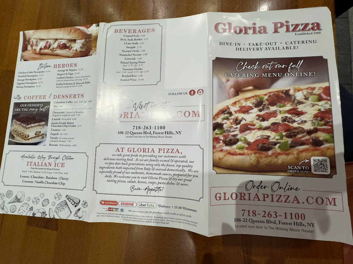 Gloria Pizza’s menu offers a straightforward and approachable selection of Italian-inspired dishes that fit perfectly with its casual, neighborhood vibe. Whether you’re stopping by for a quick slice, grabbing a hearty sandwich, or ordering a full meal, the menu balances classic comfort with familiar favorites.